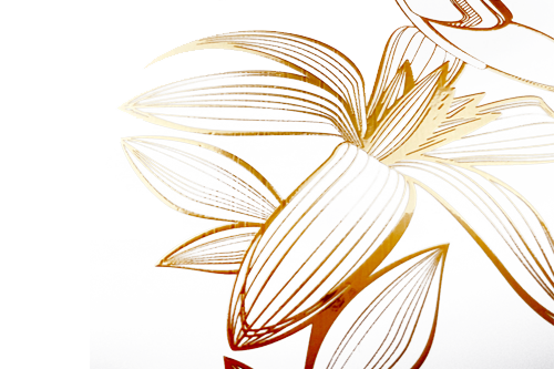 Liberté dans le choix du support papier/carton : le relief obtenu sans embossage vous permet d’appliquer le « Silk Foil » sur des feuilles d’épaisseur importante aussi bien que sur les feuilles très fines – grâce à la colle UV qui crée ce relief. Impossible à faire en dorure classique.